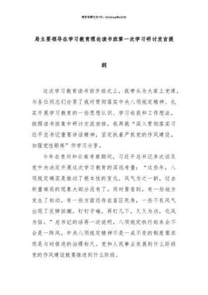 【七哥公文】2025年:【七哥公文】局主要领导在学习教育理论读书班第一次学习研讨发言提纲+更多免费公文+VX:QiGeGongWen2024+更多免费公文+VX:QiGeGongWen2024
