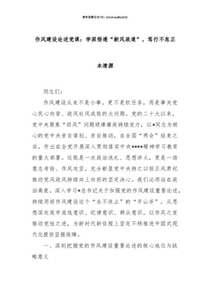 【七哥公文】2025年:【七哥公文】作风建设论述党课:学深悟透“新风政道”,笃行不怠正本清源+更多免费公文+VX:QiGeGongWen2024+更多免费公文+VX:QiGeGongWen2024