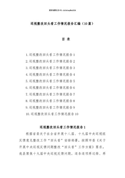 【七哥公文】2025年:【七哥公文】(10篇)巡视整改回头看工作情况报告汇编+更多免费公文+VX:QiGeGongWen2024+更多免费公文+VX:QiGeGongWen2024