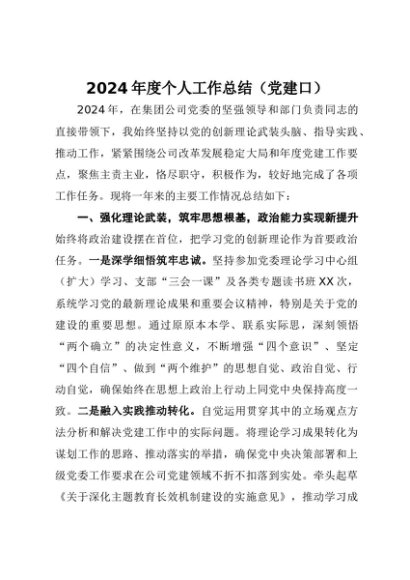 / 【七哥公文】2025年:2024年度个人工作总结(党建口)+更多免费公文+VX:QiGeGongWen2024