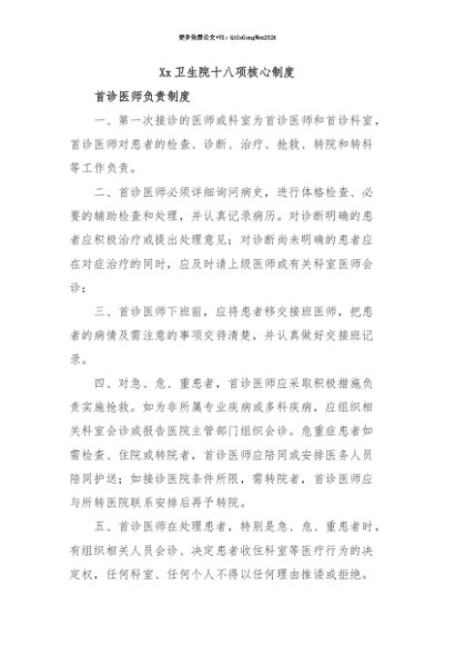 【七哥公文】2025年:【七哥公文】Xx卫生院十八项核心制度+更多免费公文+VX:QiGeGongWen2024+更多免费公文+VX:QiGeGongWen2024