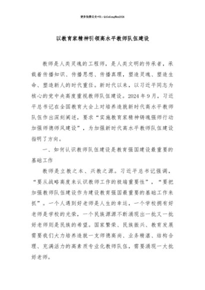 【七哥公文】2025年:【七哥公文】以教育家精神引领高水平教师队伍建设+更多免费公文+VX:QiGeGongWen2024+更多免费公文+VX:QiGeGongWen2024