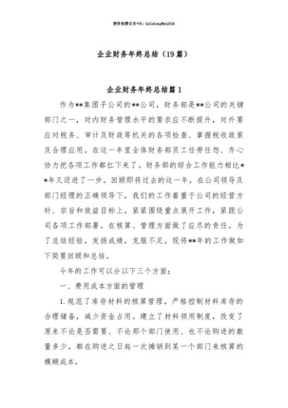【七哥公文】2025年:【七哥公文】(19篇)企业财务年终总结+更多免费公文+VX:QiGeGongWen2024+更多免费公文+VX:QiGeGongWen2024
