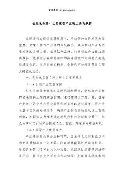【七哥公文】2025年:【七哥公文】创红色品牌・让党旗在产业链上高高飘扬+更多免费公文+VX:QiGeGongWen2024+更多免费公文+VX:QiGeGongWen2024