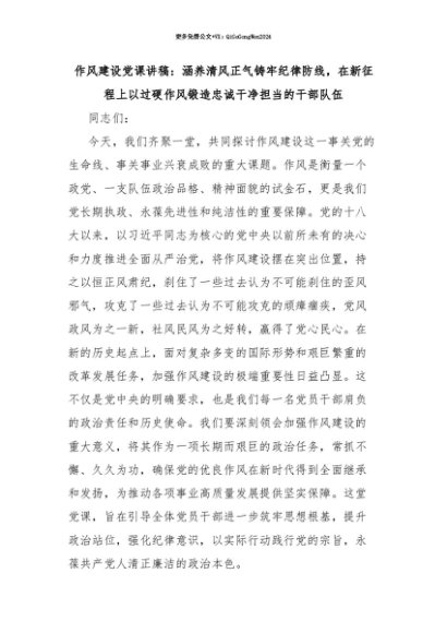 【七哥公文】2025年:【七哥公文】作风建设党课讲稿:涵养清风正气铸牢纪律防线,在新征程上以过硬作风锻造忠诚干净担当的干部队伍+更多免费公文+VX:QiGeGongWen2024+更多免费公文+VX:QiGeGongWen2024
