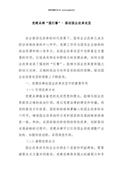 【七哥公文】2025年:【七哥公文】党建品牌“强引擎”・驱动国企改革攻坚+更多免费公文+VX:QiGeGongWen2024+更多免费公文+VX:QiGeGongWen2024