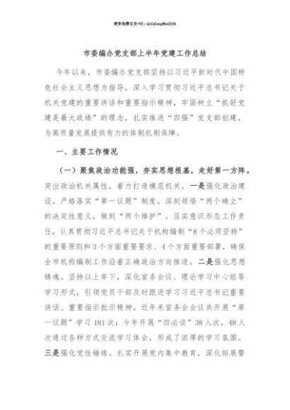 【七哥公文】2025年:【七哥公文】市委编办党支部上半年党建工作总结+更多免费公文+VX:QiGeGongWen2024+更多免费公文+VX:QiGeGongWen2024