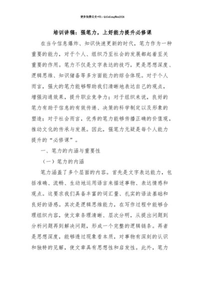 【七哥公文】2025年:【七哥公文】培训讲稿:强笔力,上好能力提升必修课+更多免费公文+VX:QiGeGongWen2024+更多免费公文+VX:QiGeGongWen2024