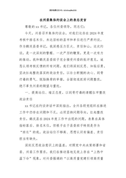 【七哥公文】2025年:【七哥公文】在州委集体约谈会上的表态发言+更多免费公文+VX:QiGeGongWen2024+更多免费公文+VX:QiGeGongWen2024