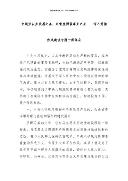 【七哥公文】2025年:【七哥公文】立规矩以夯发展之基,定制度而筑事业之底——深入贯彻作风建设专题心得体会+更多免费公文+VX:QiGeGongWen2024+更多免费公文+VX:QiGeGongWen2024