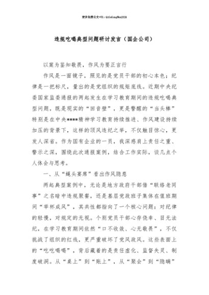 【七哥公文】2025年:【七哥公文】违规吃喝典型问题研讨发言(国企公司)+更多免费公文+VX:QiGeGongWen2024+更多免费公文+VX:QiGeGongWen2024