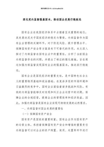 【七哥公文】2025年:【七哥公文】深化党内监督强基固本,推动国企发展行稳致远+更多免费公文+VX:QiGeGongWen2024+更多免费公文+VX:QiGeGongWen2024