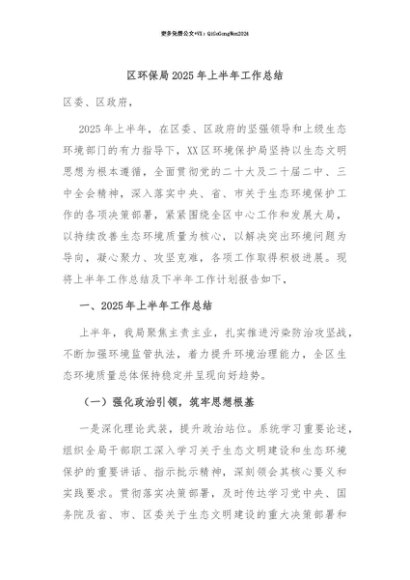 【七哥公文】2025年:【七哥公文】区环保局2025年上半年工作总结+更多免费公文+VX:QiGeGongWen2024+更多免费公文+VX:QiGeGongWen2024