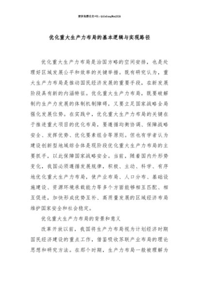 【七哥公文】2025年:【七哥公文】优化重大生产力布局的基本逻辑与实现路径+更多免费公文+VX:QiGeGongWen2024+更多免费公文+VX:QiGeGongWen2024
