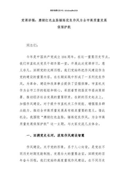 【七哥公文】2025年:【七哥公文】党课讲稿:赓续红色血脉锤炼优良作风为全市高质量发展保驾护航+更多免费公文+VX:QiGeGongWen2024+更多免费公文+VX:QiGeGongWen2024