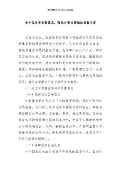 【七哥公文】2025年:【七哥公文】全方位完善监督体系,强化对重点领域的监督力度+更多免费公文+VX:QiGeGongWen2024+更多免费公文+VX:QiGeGongWen2024