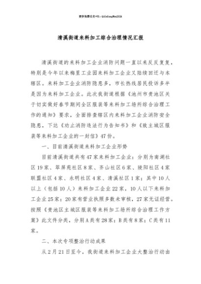 【七哥公文】2025年:【七哥公文】清溪街道来料加工综合治理情况汇报+更多免费公文+VX:QiGeGongWen2024+更多免费公文+VX:QiGeGongWen2024