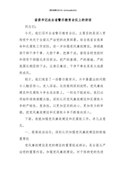 【七哥公文】2025年:【七哥公文】省委书记在全省警示教育会议上的讲话+更多免费公文+VX:QiGeGongWen2024+更多免费公文+VX:QiGeGongWen2024