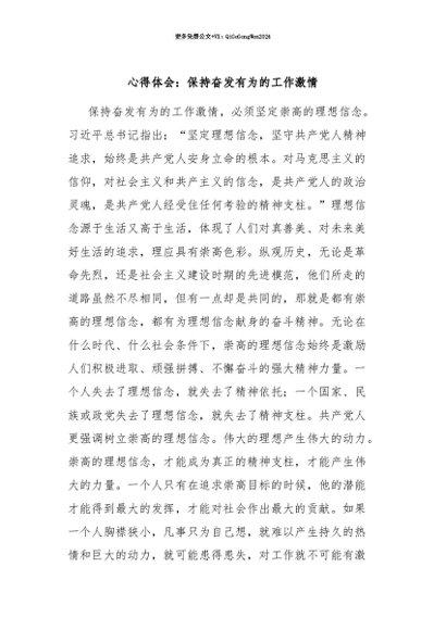 【七哥公文】2025年:【七哥公文】心得体会:保持奋发有为的工作激情+更多免费公文+VX:QiGeGongWen2024+更多免费公文+VX:QiGeGongWen2024