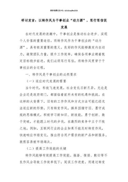 【七哥公文】2025年:【七哥公文】研讨发言:以转作风为干事创业“动力源”,笃行笃信促发展+更多免费公文+VX:QiGeGongWen2024+更多免费公文+VX:QiGeGongWen2024