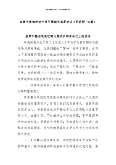【七哥公文】2025年:【七哥公文】(2篇)在集中整治违规吃喝问题动员部署会议上的讲话+更多免费公文+VX:QiGeGongWen2024+更多免费公文+VX:QiGeGongWen2024