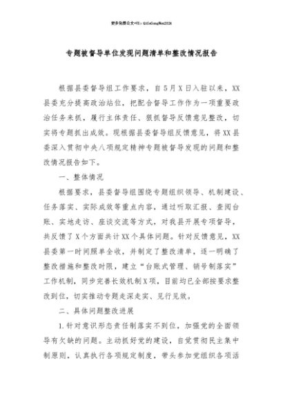 【七哥公文】2025年:【七哥公文】专题被督导单位发现问题清单和整改情况报告+更多免费公文+VX:QiGeGongWen2024+更多免费公文+VX:QiGeGongWen2024