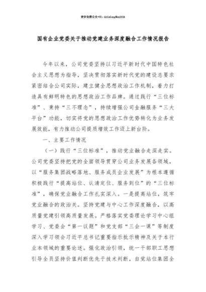 【七哥公文】2025年:【七哥公文】国有企业党委关于推动党建业务深度融合工作情况报告+更多免费公文+VX:QiGeGongWen2024+更多免费公文+VX:QiGeGongWen2024