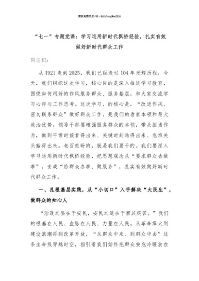 【七哥公文】2025年:【七哥公文】“七一”专题党课:学习运用新时代枫桥经验,扎实有效做好新时代群众工作+更多免费公文+VX:QiGeGongWen2024+更多免费公文+VX:QiGeGongWen2024