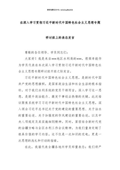 【七哥公文】2025年:【七哥公文】在深入学习贯彻习近平新时代中国特色社会主义思想专题研讨班上的表态发言+更多免费公文+VX:QiGeGongWen2024+更多免费公文+VX:QiGeGongWen2024
