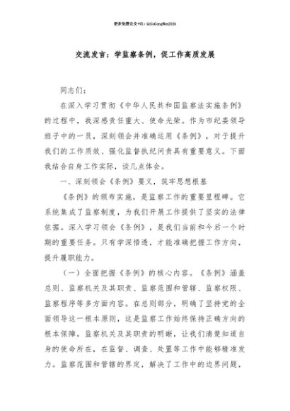 【七哥公文】2025年:【七哥公文】交流发言:学监察条例,促工作高质发展+更多免费公文+VX:QiGeGongWen2024+更多免费公文+VX:QiGeGongWen2024