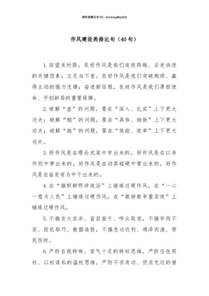 【七哥公文】2025年:【七哥公文】(40句)作风建设类排比句+更多免费公文+VX:QiGeGongWen2024+更多免费公文+VX:QiGeGongWen2024