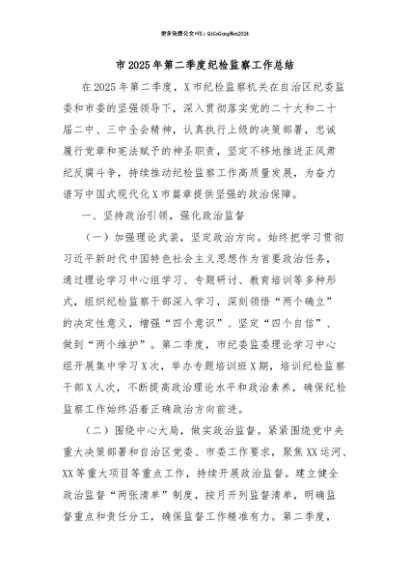 【七哥公文】2025年:【七哥公文】市2025年第二季度纪检监察工作总结+更多免费公文+VX:QiGeGongWen2024+更多免费公文+VX:QiGeGongWen2024