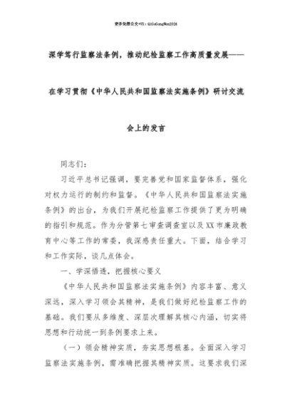 【七哥公文】2025年:【七哥公文】深学笃行监察法条例,推动纪检监察工作高质量发展——在学习贯彻《中华人民共和国监察法实施条例》研讨交流会上的发言+更多免费公文+VX:QiGeGongWen2024+更多免费公文+VX:QiGeGongWen2024