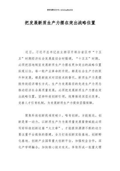 【七哥公文】2025年:【七哥公文】把发展新质生产力摆在突出战略位置+更多免费公文+VX:QiGeGongWen2024+更多免费公文+VX:QiGeGongWen2024