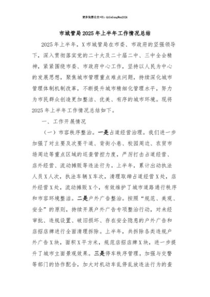 【七哥公文】2025年:【七哥公文】市城管局2025年上半年工作情况总结+更多免费公文+VX:QiGeGongWen2024+更多免费公文+VX:QiGeGongWen2024