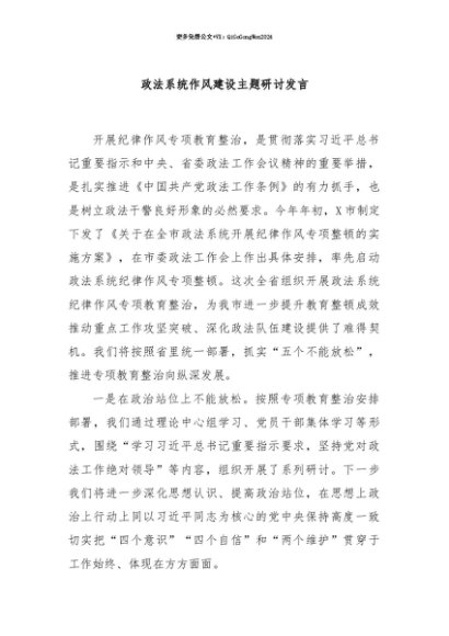【七哥公文】2025年:【七哥公文】政法系统作风建设主题研讨发言+更多免费公文+VX:QiGeGongWen2024+更多免费公文+VX:QiGeGongWen2024