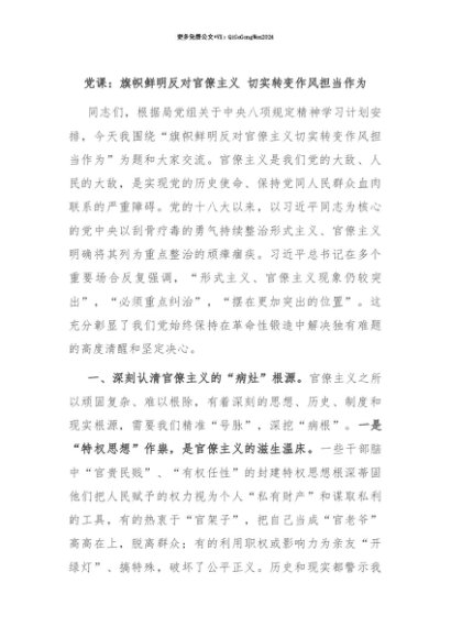 【七哥公文】2025年:【七哥公文】党课:旗帜鲜明反对官僚主义 切实转变作风担当作为+更多免费公文+VX:QiGeGongWen2024+更多免费公文+VX:QiGeGongWen2024