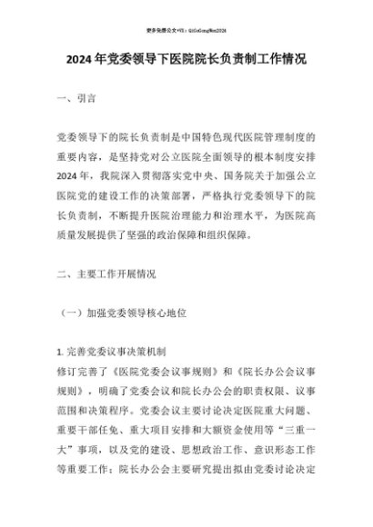 【七哥公文】2025年:【七哥公文】2024年党委领导下医院院长负责制工作情况+更多免费公文+VX:QiGeGongWen2024+更多免费公文+VX:QiGeGongWen2024