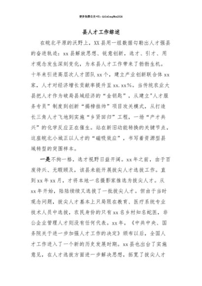 【七哥公文】2025年:【七哥公文】县人才工作综述+更多免费公文+VX:QiGeGongWen2024+更多免费公文+VX:QiGeGongWen2024