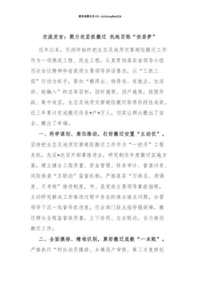 【七哥公文】2025年:【七哥公文】交流发言:聚力攻坚抓搬迁 托起百姓“安居梦”+更多免费公文+VX:QiGeGongWen2024+更多免费公文+VX:QiGeGongWen2024