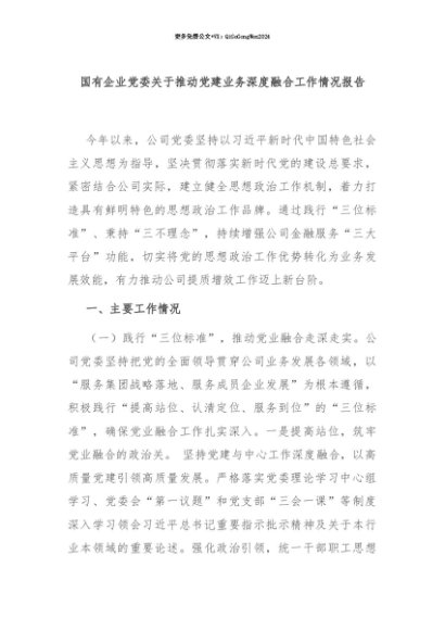 【七哥公文】2025年:【七哥公文】国有企业党委关于推动党建业务深度融合工作情况报告+更多免费公文+VX:QiGeGongWen2024+更多免费公文+VX:QiGeGongWen2024