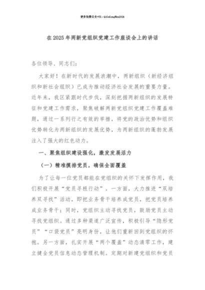 【七哥公文】2025年:【七哥公文】在2025年两新党组织党建工作座谈会上的讲话+更多免费公文+VX:QiGeGongWen2024+更多免费公文+VX:QiGeGongWen2024