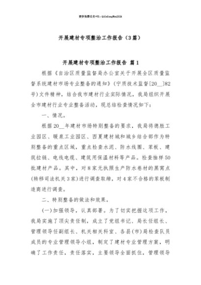 【七哥公文】2025年:【七哥公文】(3篇)开展建材专项整治工作报告+更多免费公文+VX:QiGeGongWen2024+更多免费公文+VX:QiGeGongWen2024