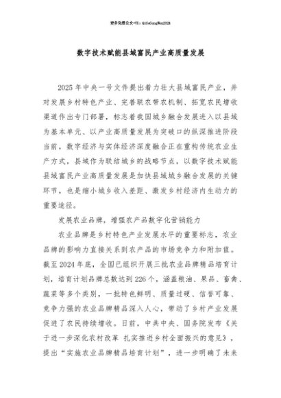【七哥公文】2025年:【七哥公文】数字技术赋能县域富民产业高质量发展+更多免费公文+VX:QiGeGongWen2024+更多免费公文+VX:QiGeGongWen2024