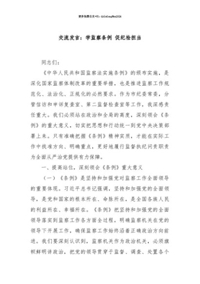 【七哥公文】2025年:【七哥公文】交流发言:学监察条例 促纪检担当+更多免费公文+VX:QiGeGongWen2024+更多免费公文+VX:QiGeGongWen2024