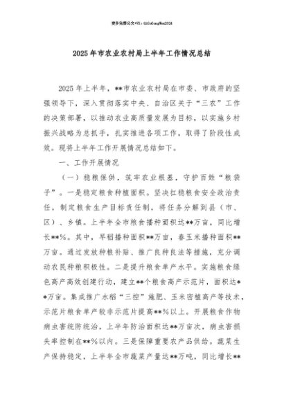 【七哥公文】2025年:【七哥公文】2025年市农业农村局上半年工作情况总结+更多免费公文+VX:QiGeGongWen2024+更多免费公文+VX:QiGeGongWen2024