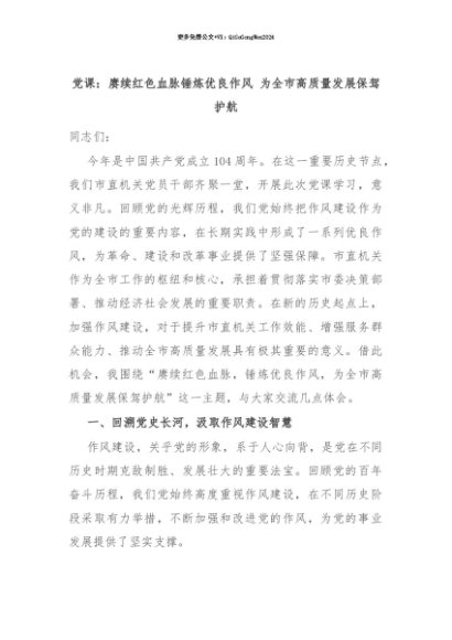 【七哥公文】2025年:【七哥公文】党课:赓续红色血脉锤炼优良作风 为全市高质量发展保驾护航+更多免费公文+VX:QiGeGongWen2024+更多免费公文+VX:QiGeGongWen2024