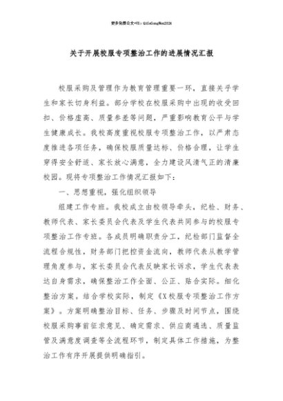 【七哥公文】2025年:【七哥公文】关于开展校服专项整治工作的进展情况汇报+更多免费公文+VX:QiGeGongWen2024+更多免费公文+VX:QiGeGongWen2024