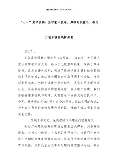 【七哥公文】2025年:【七哥公文】“七一”党课讲稿:坚守初心使命,勇担时代重任,奋力开创乡镇发展新局面+更多免费公文+VX:QiGeGongWen2024+更多免费公文+VX:QiGeGongWen2024