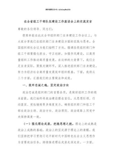 【七哥公文】2025年:【七哥公文】在全省组工干部队伍建设工作座谈会上的交流发言+更多免费公文+VX:QiGeGongWen2024+更多免费公文+VX:QiGeGongWen2024